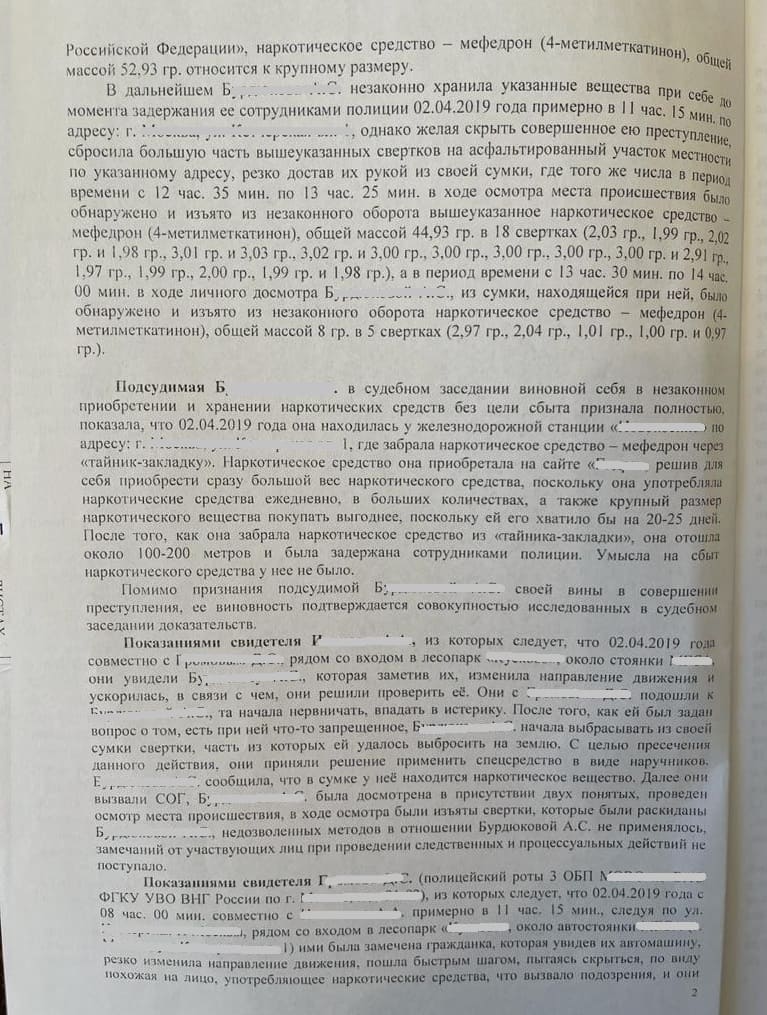 Были даны признательные показания только по признанию вины в части незаконного приобретения хранения наркотических средств без цели сбыта